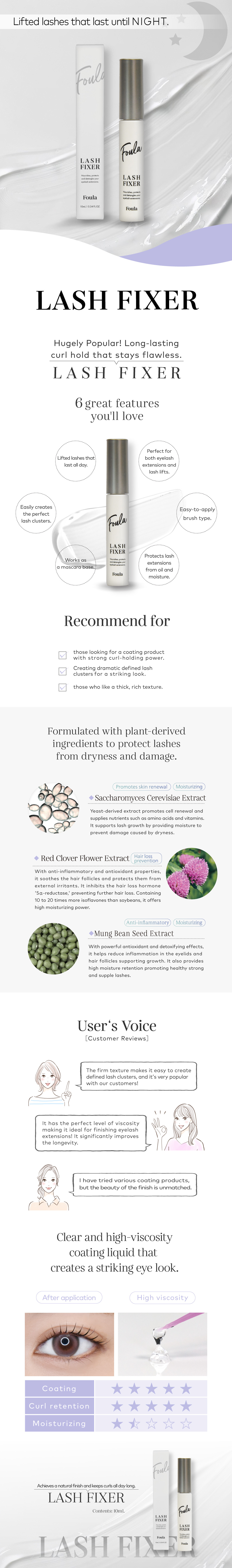 Apply from the extension bonding area toward the tips of the lashes in the morning and evening after cleansing. Coating both the front and back sides of the lashes helps maintain curl more effectively.